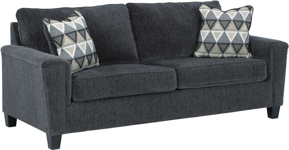 Covered in a smoke gray chenille upholstery loaded with plush texture, this less-is-more contemporary sofa is dressed to impress with angled side profiling and track armrests wrapped with a layer of pillowy softness for that little something extra.Read More