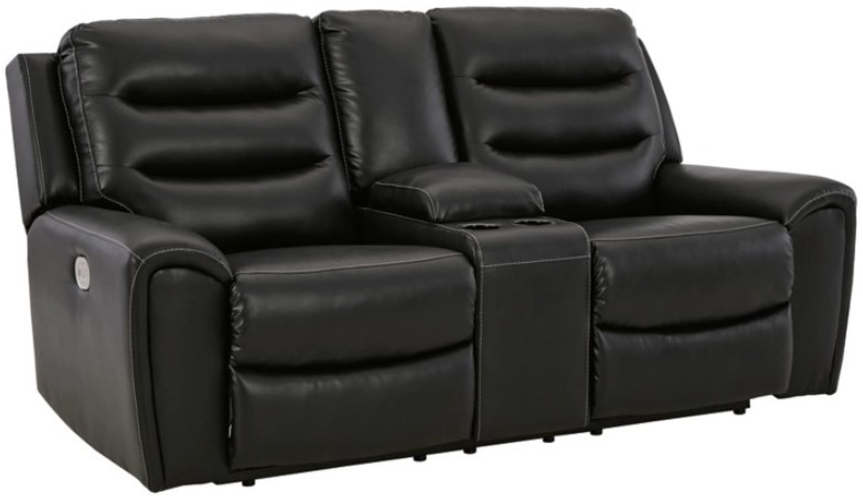 With its decidedly contemporary styling, this power reclining loveseat with console has a sleek sensibility that seamlessly elevates your living room aesthetic. Explore endless possibilities for comfort with its one-touch power control, zero-gravity reclining and adjustable headrests. A triple-tier back and chic black upholstery round out this simply stunning piece.Read More